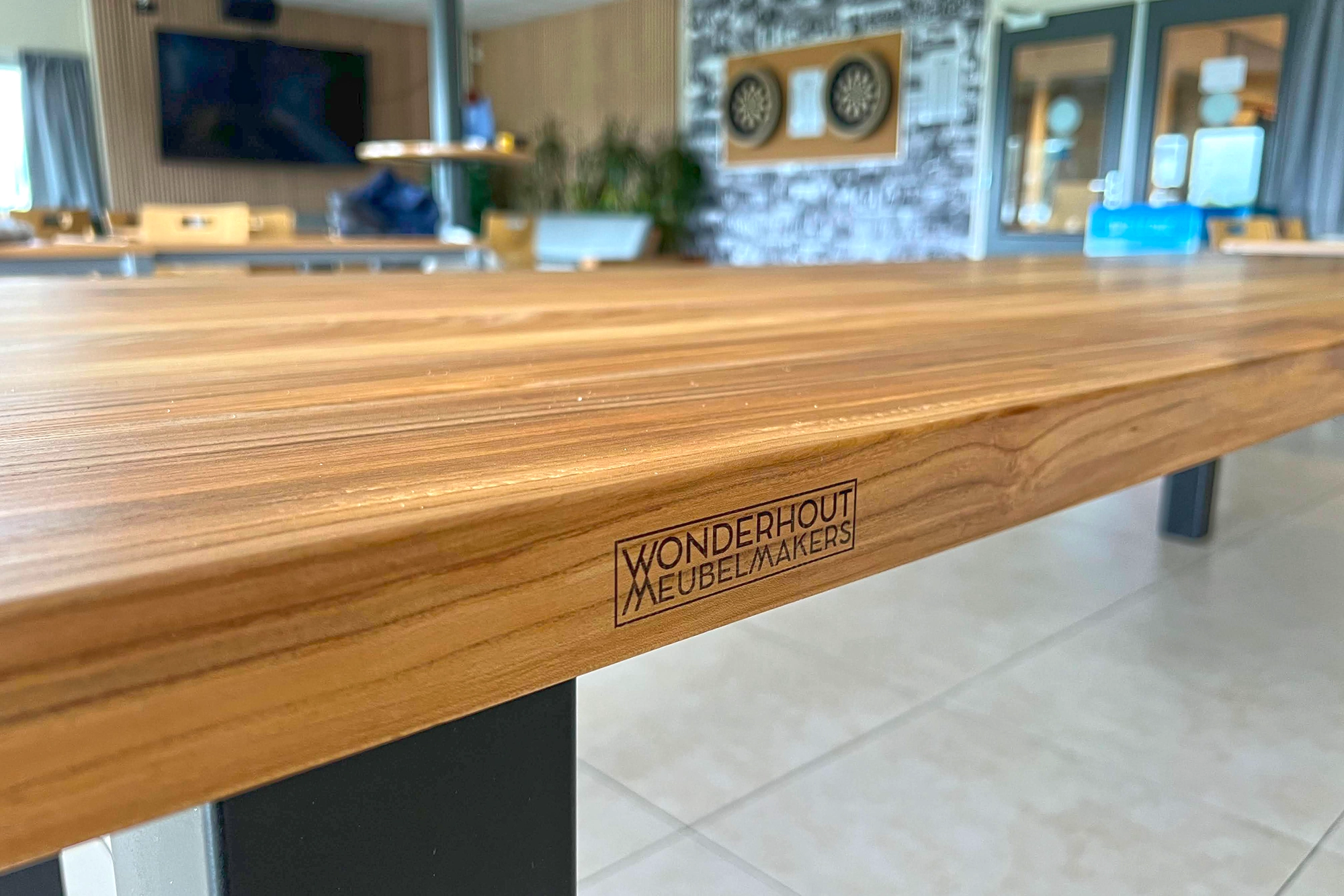 Niet alleen het tafelblad is volledig naar jouw wens te maken, ook het onderstel kun je geheel zelf samenstellen. Of je nu kiest voor een robuust houten onderstel dat een warme en natuurlijke sfeer in je interieur brengt, of juist voor een strak, industrieel metalen frame dat voor een stoere touch zorgt, alles is mogelijk.